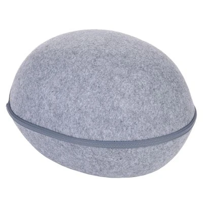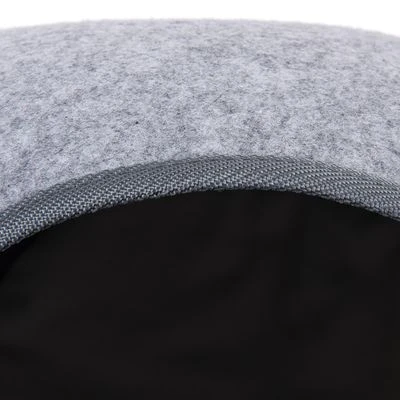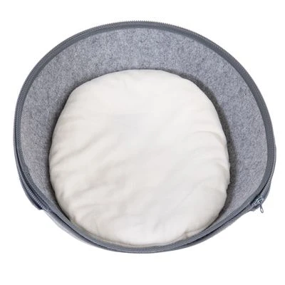 Cueva para gatos de fieltro. Tiene una cremallera para abrirla en dos mitades y utilizarla como cama. Con cojín extraíble. Color: gris.