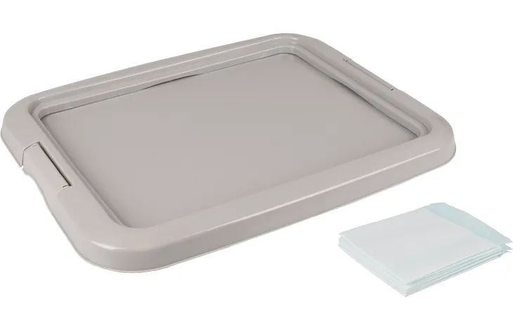 Bandeja de aseo con un empapador para educar y enseñar a su mascota a hacer pipi en un lugar determinado de la casa. Ideal para aquellos perros que se pasan muchas horas dentro de casa así como cachorros y ancianos.