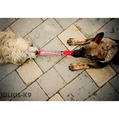 Mordedor de tela francesa con dos asas para jugar. Diseño original de Julius K9 hecho en algodón por fuera y nylon elástico por dentro. Con mangos amplios para un agarre cómodo y seguro.