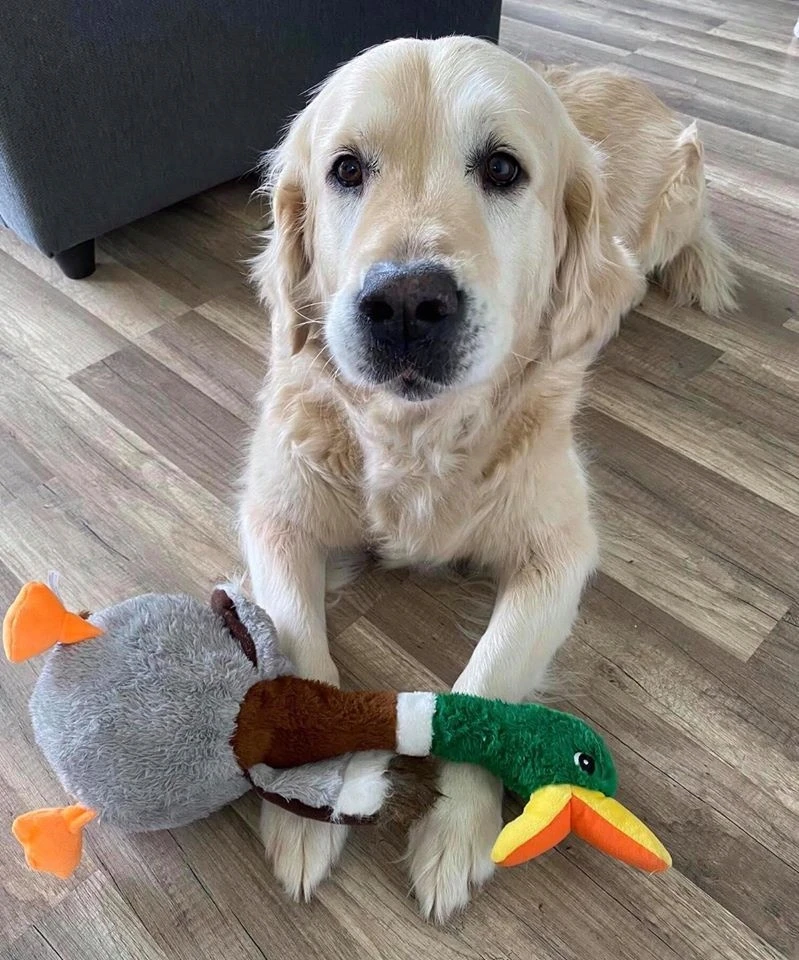 Kong shakers honkers duck L, el chirrido de bajo tono y el diseño de felpa reforzado mantienen el entusiasmo del perro y prolongan el rato de juego.