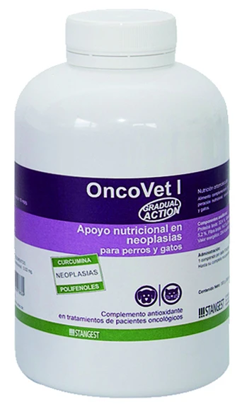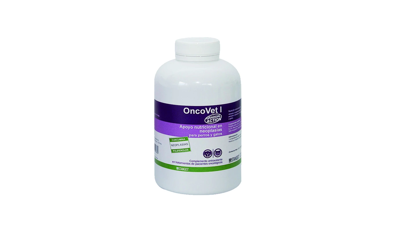 Suplemento de apoyo nutricional para perros y gatos con cáncer. OncoVet cubre las carencias de nutrientes de los animales en tratamientos de quimioterapia y radioterapia. Con antioxidantes. Se puede combinar con Oncovet II. Presentación: 60 comprimidos.