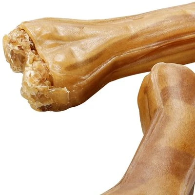 Snacks en forma de hueso de piel de caballo. Naturales e hipoalergénicos. Ideales para fortalecer los músculos de la mandíbula y estimular la masticación. Bajos en grasa.