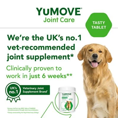 Mantenga las articulaciones de su perro sanas y móviles con omega-3 y condroitina natural de mejillones de labios verdes, combinados en este suplemento nutricional YuMOVE para promover la salud del cartílago y la movilidad.